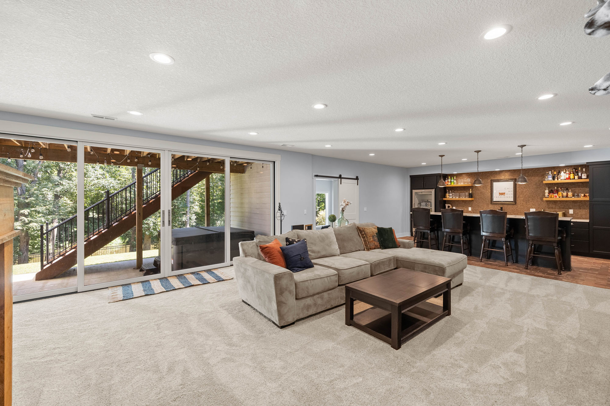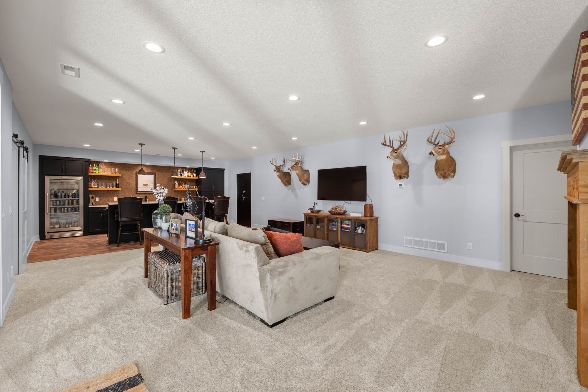 - Lower level: bar, living room, weight/flex room, office, bedroom and full bath