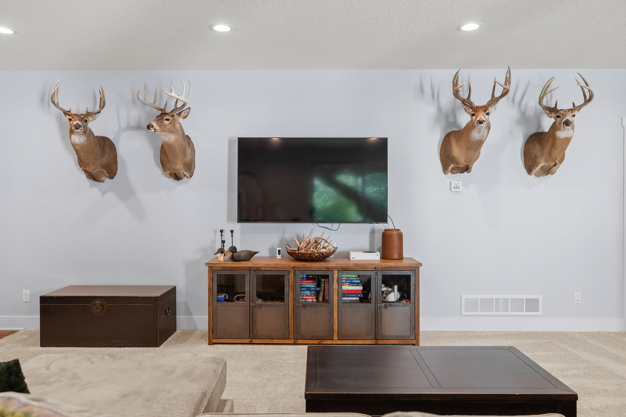 The lower level hardly resembles a basement thanks to numerous windows allowing natural light and outdoor access. With 1,685 square feet of finished space, it’s perfect for gatherings, relaxation, and entertainment.
