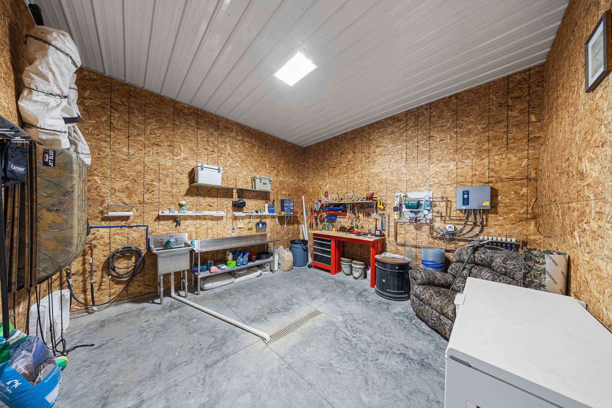 As you travel down the driveway, a stunning 1.5-story house greets you, featuring an oversized front porch ideal for relaxing and enjoying rain or shine. In addition to a spacious three-car attached garage, there’s a remarkable 2,400-square-foot detached garage, perfect for extra vehicles, recreational equipment, or hobbies; geothermal and in-ground heating offer endless possibilities. Think golf simulator, batting cage, hunting base, or an ultimate lounge.